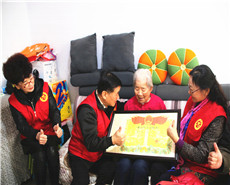 志愿者张平拿出梳子像儿女一样给赵振霞老人梳了头。志愿者张平对大家说道:“9年来,每次来看望老人我都要给老人梳下头,在给老人送上儿女般的真情和尊敬的同时,还送上对革命烈士的崇敬怀念之情”。 赵振霞老人和家人高兴的拿起桌上摆放的桔子、大枣给大家吃。 在志愿者将要离开和老人告别时,赵振霞老人拉着大家的手依依不舍的连声说道:“谢谢大家来看我,有空常来呀!”并和大家合照了全家福。