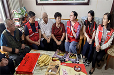 星光集团中星路桥工程有限公司一分公司办公室主任张倩代表公司,向刘春凯老人一家人问好送上祝福,并向刘春凯老人一家人送上了中秋月饼等慰问品! 刘宏雷高兴的代表一家人和志愿者握手致谢,表达了他心中的感激之情。